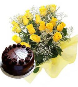 A Gift for youA romantic gift that's sure to touch your beloved's heart. 1 dozen yellow roses bunch type bouquet w/ chocolate cake.Your gift will come with a greeting card |