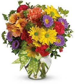 Colored flowers mixDaisy spray chrysanthemums, asters, carnations, alstroemeria, bupleurum |