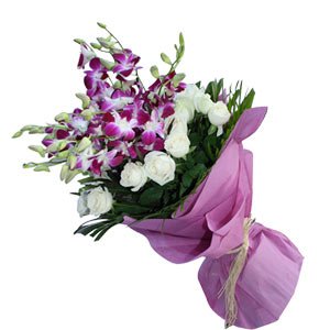 Orchids & Roses24 White roses & 10 purple orchids bouquet. |