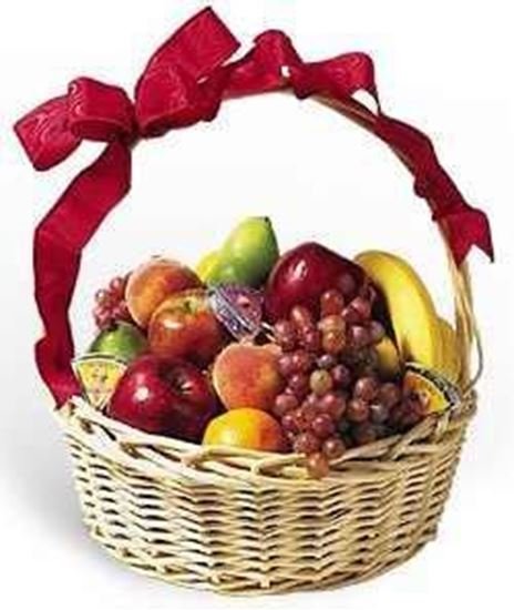 6 items fruits basketFilled to the brim with domestic and exotic fruits, our large, natural woven basket contains an assortment of the freshest seasonal and regional fruits. Fruit choices may include mangos, pears, apples,, bananas, oranges, and pineapple. Festively decorated with a bright bow and wrapped in colored cellophane, our basket is a great treat for anyone on your list. Exact basket and fruit selection may vary by season and delivery location.(6 items).​N0TE: FRUITS ITEMS MAY VARY ..DEPEND ON TH AVAILABILITY |