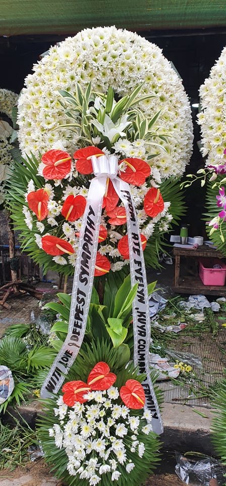 White & red Sympathy Standing SprayNo Product Detail Available |